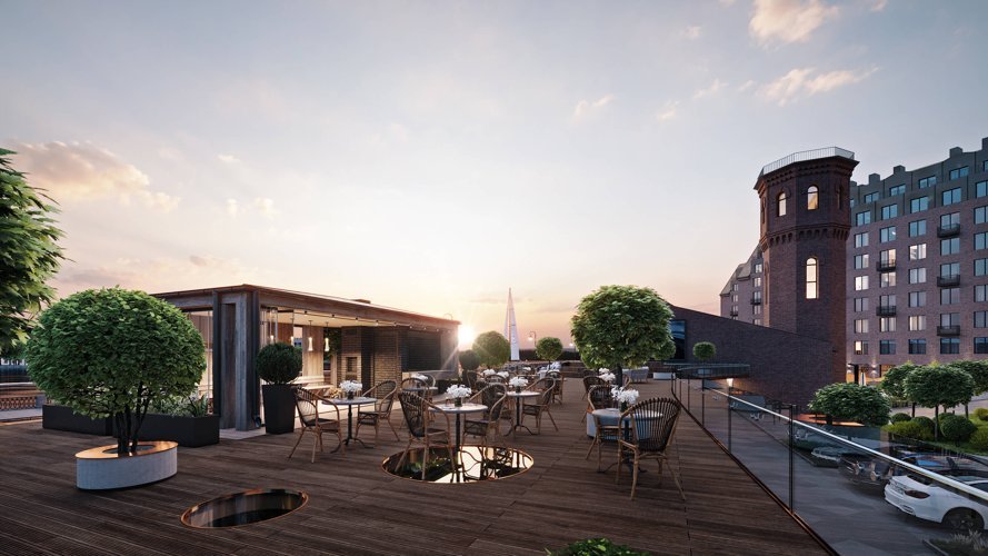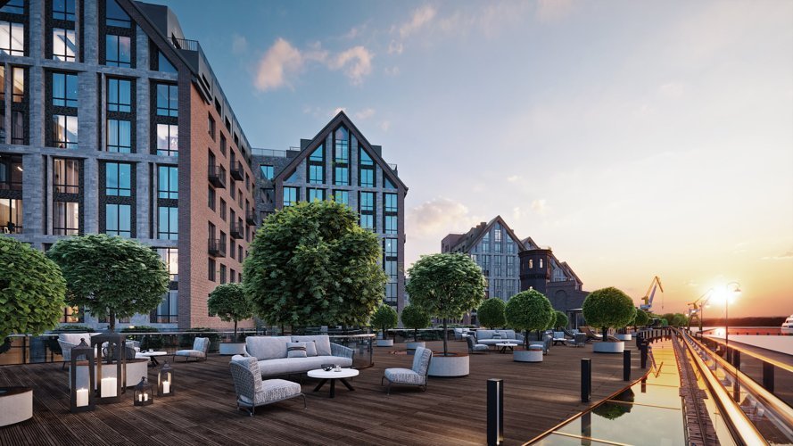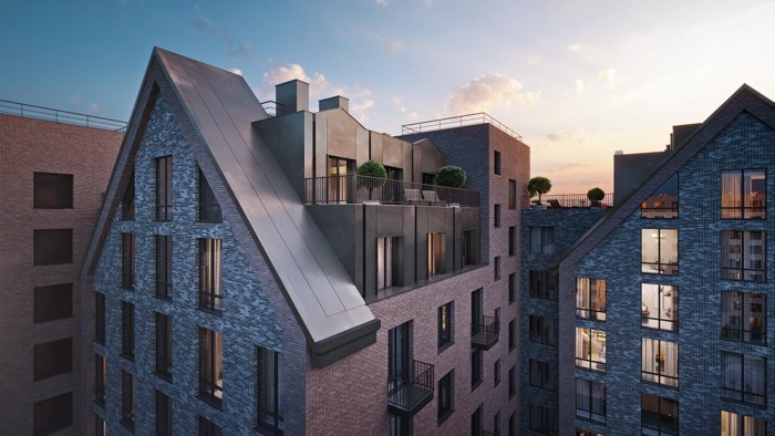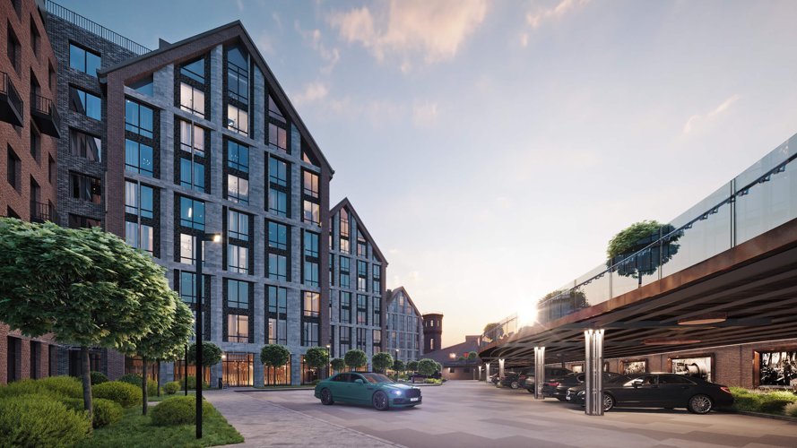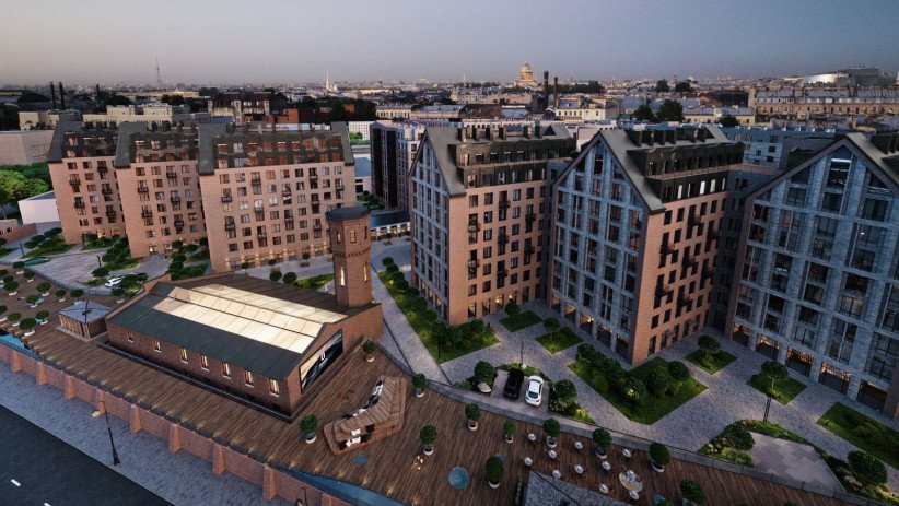 Внешний вид жилых домов отсылает к индустриальному прошлому острова и полностью учитывает петербургский архитектурный стиль. Фасады облицованы кирпичом терракотового и серого оттенков. Все материалы отвечают высоким качествам строительства. Архитектурный облик разработан бюро Intercolumnium Евгения Подгорнова. Предложенная концепция полностью изменит и существенно повысит статус этой части Адмиралтейского района.