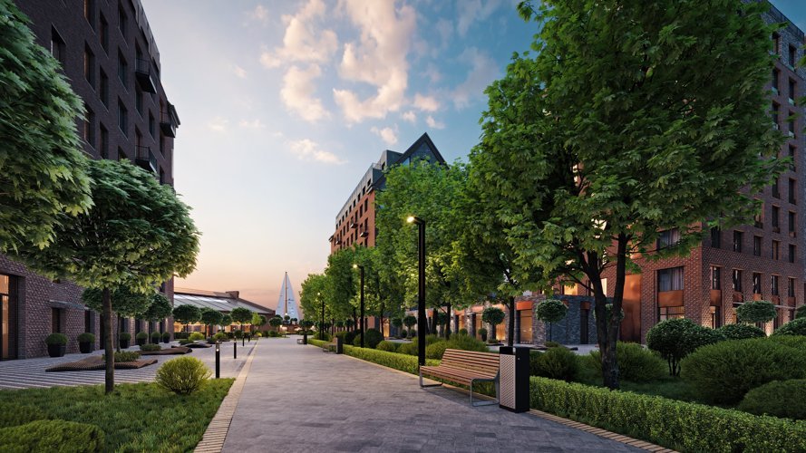 Променад в "ОСТРОВ ПЕРВЫХ" объединяет все корпуса квартала в единую гармоничную структуру. Здесь среди зеленых аллей и уютных кафе каждый сможет зарядиться энергией, найти вдохновение, поработать вне офиса или просто отдохнуть.