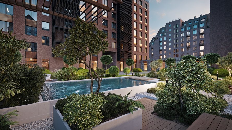 Особое внимание уделено безопасности: закрытые дворы, охраняемая территория, круглосуточное видеонаблюдение и контроль доступа 24/7.