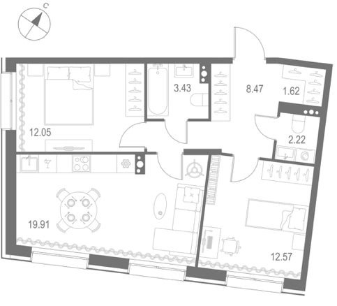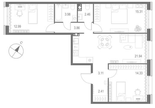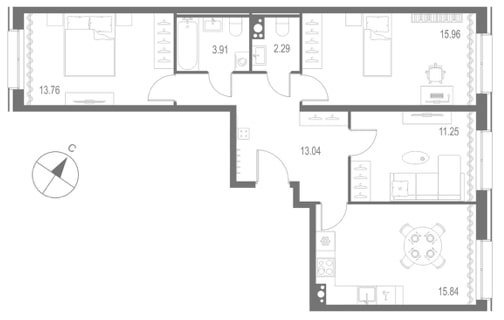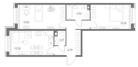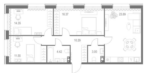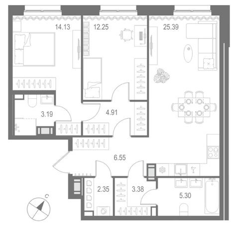 Проект разделен на три очереди с довольно разнообразной квартирографией: от студий и однокомнатных квартир до просторных семейных трехкомнатных площадью до 150 кв. м. Предусмотрены варианты с объединением квартир на одном этаже и превращением их в 300-метровый видовой пентхаус, занимающий целый этаж и выходящий окнами на Неву и Васильевский остров.