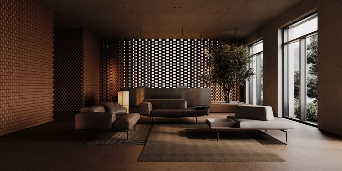 Дизайн лобби и общественных пространств создан ведущей студией HOT WALLS. Интерьер выполнен в современном минималистичном стиле. Основу отделки составляют элитные материалы благородных оттенков.