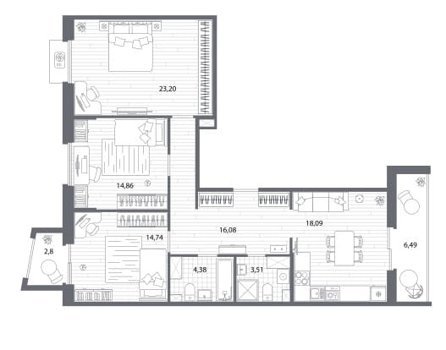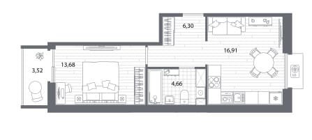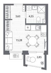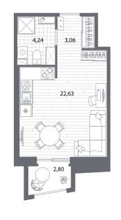 Площадь от 22.74 м2