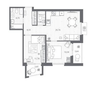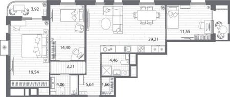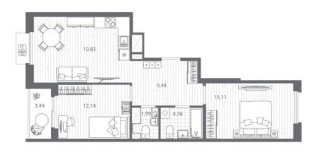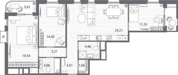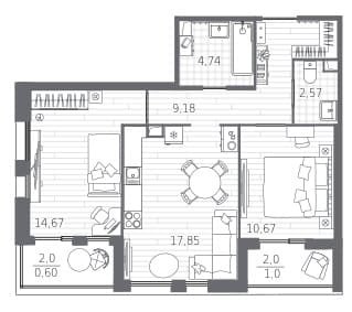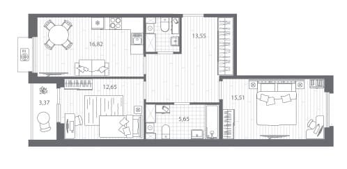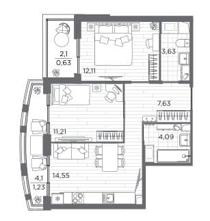 Площадь от 55.15 м2