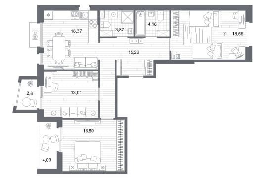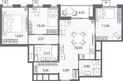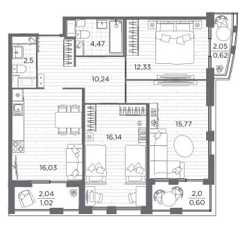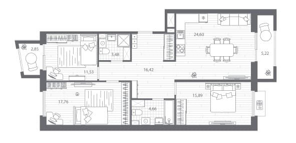 Площадь от 76.55 м2