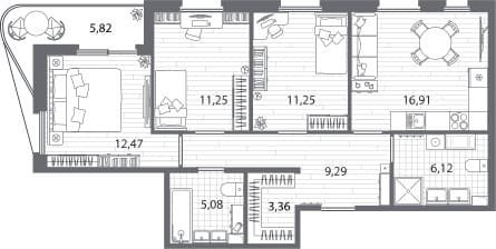 3-комнатная