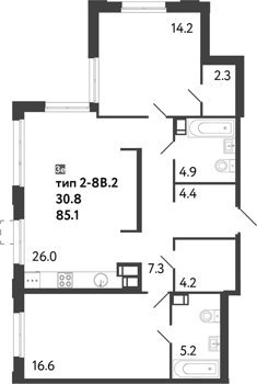 В проекте представлены планировки от однокомнатных до четырехкомнатных квартир. Есть планировки с удобными кухнями-гостиными, мастер-спальнями с отдельным гардеробом, личными и гостевыми санузлами, видовыми лоджиями с витражным остеклением. Площади квартир начинаются от 35 кв. м и достигают 124 кв. м. Высокие потолки от 2,72 до 3 метров и широкие алюминиевые окна с двухкамерными стеклопакетами. Выполняется предчистовая отделка.
