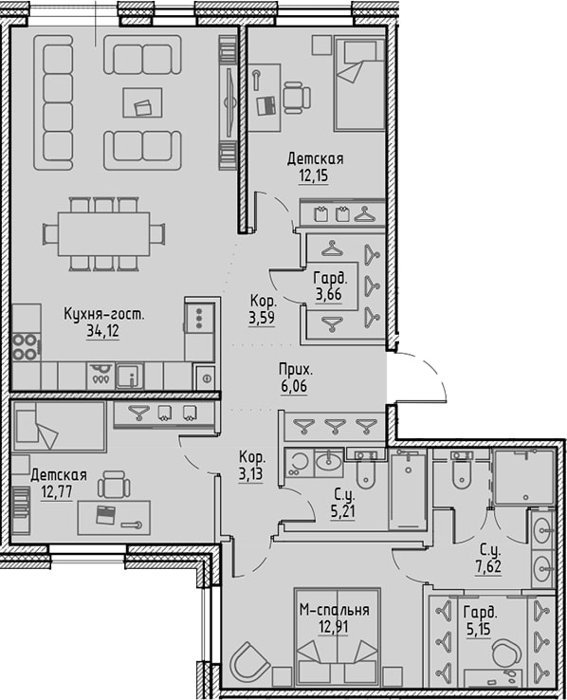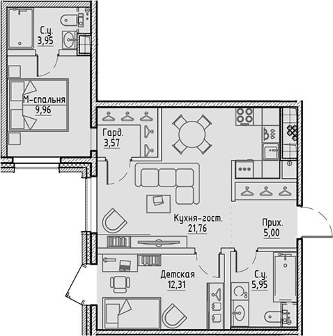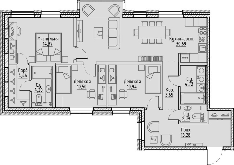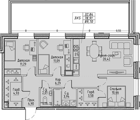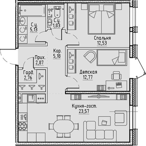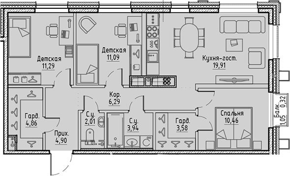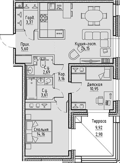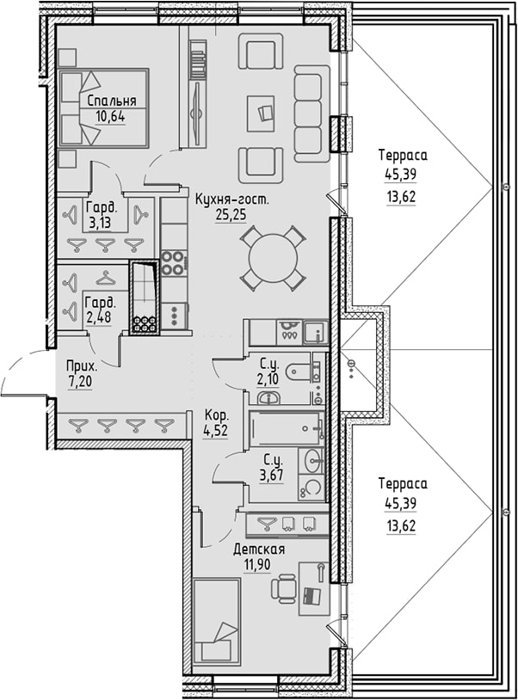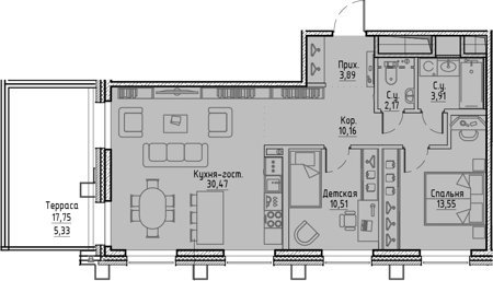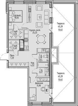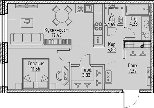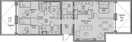 В жилом комплексе предложено множество планировочных решений: студии, 1, 2, и 3-комнатные лоты, площадью 41-108 м2. Сдаются они с отделкой по принципу «Технобокс», высотой потолков от 2,7 до 3 метров. Можно выбрать квартиру с французскими окнами. эркером, балконом или просторной террасой.