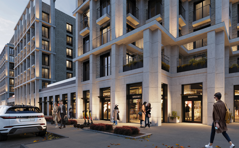В комплексе предусмотрена закрытая охраняемая территория с ландшафтным озеленением, обустроенными зонами отдыха для детей и взрослых. Предусмотрен свой детский сад. На первых этажах комплекса запланированы коммерческие помещения под магазины, кафе и сервисные службы. Для владельцев автомобилей спроектирован подземный паркинг.