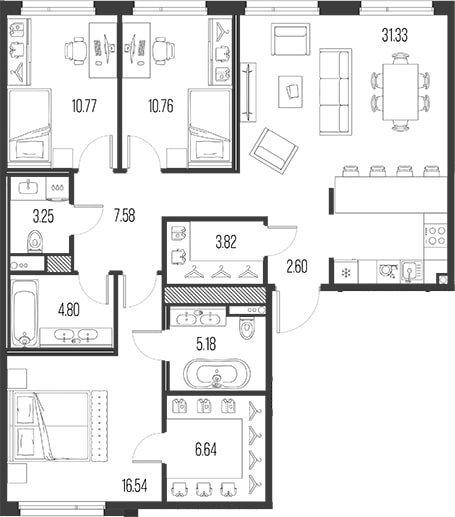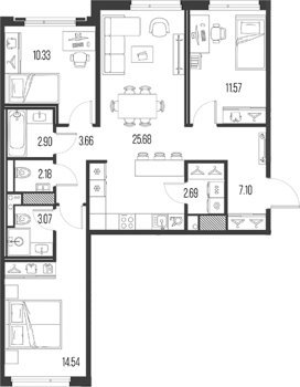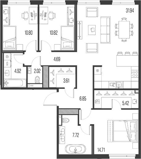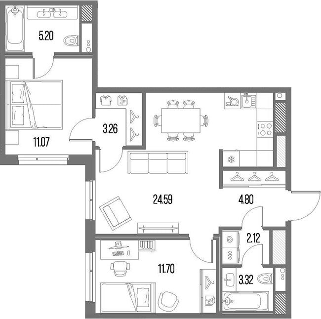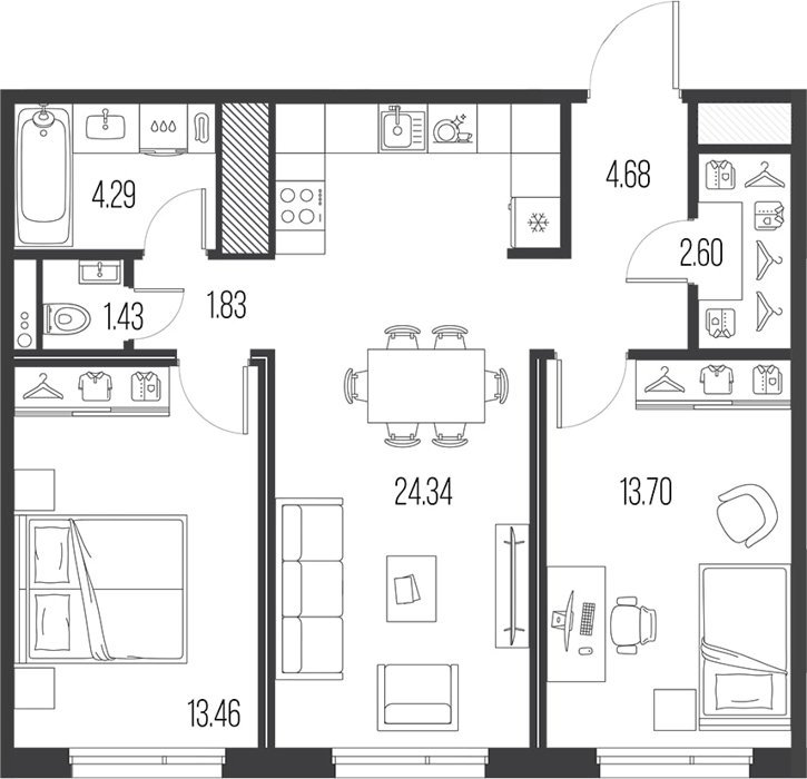 Предложение планировочных решений включает в себя студии и просторные квартиры с разным количеством комнат, предлагаемые с подготовленной отделкой, увеличенными окнами и потолками высотой 2,7 м, а на верхних этажах – 3 метра.