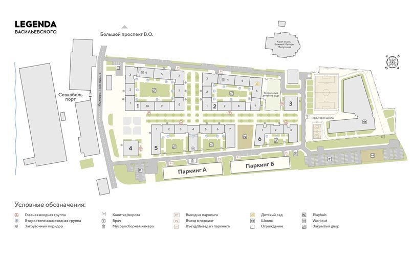 LEGENDA Васильевского — масштабный жилой квартал расположенный напротив креативного кластера «Севкабель Порт», точки притяжения для жителей не только Васильевского острова, но и всего города. Жилой комплекс представлен шестью разноформатными корпусами с вентилируемыми фасадами, уникальным дизайном и разнообразной цветовой гаммой.